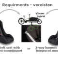 Afhankelijk van het type veiligheidsgordel in uw bakfiets, wordt de juiste  bevestigingsset meegeleverd. Deze set is merk en gordelsoort gebonden.