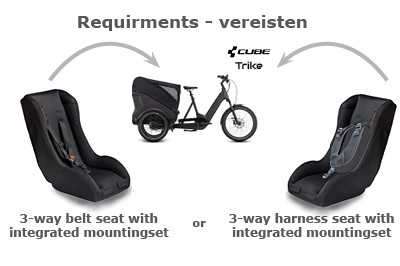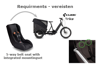 • BAKFIETS: 3 punts CUBE TRIKE bevestigingsset (uitsluitend icm een stoel met geïntegreerde bevestiging)
