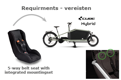 • BAKFIETS: 5 punts CUBE HYBRID bevestigingsset (uitsluitend icm een stoel met geïntegreerde bevestiging)