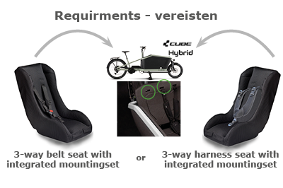 • BAKFIETS: 5 punts CUBE HYBRID bevestigingsset (uitsluitend icm een stoel met geïntegreerde bevestiging)