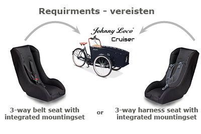 • BAKFIETS: 3 punts JOHNNY LOCO CRUISER bevestigingsset (uitsluitend icm een stoel met geïntegreerde bevestiging)