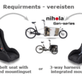 Depending on the type of safety belt used in your cargo bike, the correct mounting set will be supplied. This mounting set is brand-and belt specific.