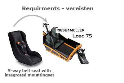 Depending on the type of safety belt used in your cargo bike, the correct mounting set will be supplied. This mounting set is brand-and belt specific.