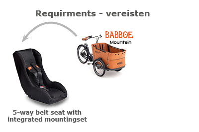 • BAKFIETS: 5 punts Babboe MOUNTAIN bevestigingsset (uitsluitend icm een stoel met geïntegreerde bevestiging)