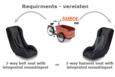BAKFIETS: 3 punts Babboe CURVE bevestigingsset (uitsluitend icm een stoel met...BAKFIETS: 3 punts BAKFIETS.NL bevestigingsset (uitsluitend icm een stoel met...