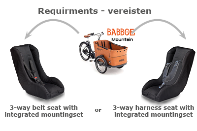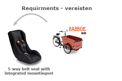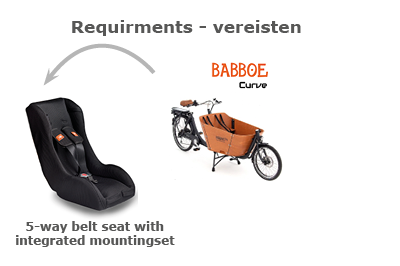 • BAKFIETS: 5 punts Babboe MOUNTAIN bevestigingsset (uitsluitend icm een stoel met geïntegreerde bevestiging)