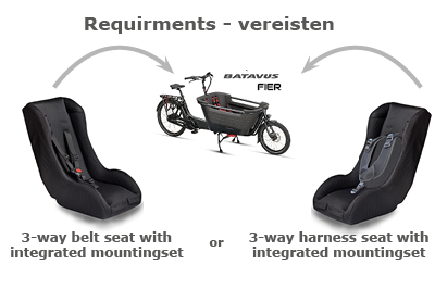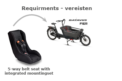• BAKFIETS: 3 punts BATAVUS FIER bevestigingsset (uitsluitend icm een stoel met geïntegreerde bevestiging)