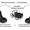 Depending on the type of safety belt used in your cargo bike, the correct mounting set will be supplied. This mounting set is brand-and belt specific.