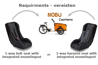 • BAKFIETS: 3 punts NOBU CAPITANO bevestigingsset (uitsluitend icm een stoel met geïntegreerde bevestiging)
