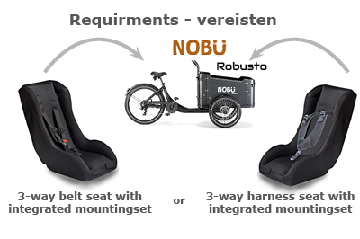 • BAKFIETS: 3 punts NOBU ROBUSTO bevestigingsset (uitsluitend icm een stoel met geïntegreerde bevestiging)