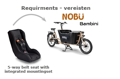 • BAKFIETS: 5 punts NOBU BAMBINI bevestigingsset (uitsluitend icm een stoel met geïntegreerde bevestiging)