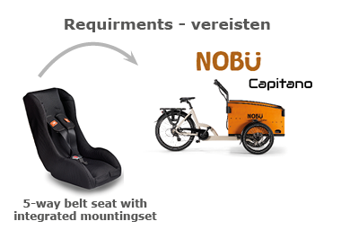 • BAKFIETS: 5 punts NOBU CAPITANO bevestigingsset (uitsluitend icm een stoel met geïntegreerde bevestiging)