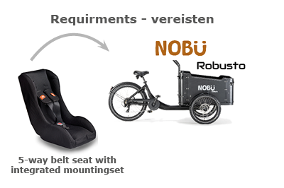 • BAKFIETS: 5 punts NOBU ROBUSTO bevestigingsset (uitsluitend icm een stoel met geïntegreerde bevestiging)